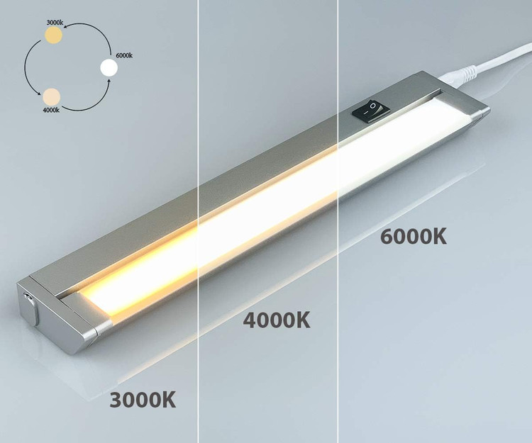 [تغییر رنگ نور] چراغ آشپزخانه LED نور همگن (560 لومن، 10.5 وات) را با آباژور باکیفیت ساخته شده از رایانه شخصی پخش می کند. رنگ روشن (سفید گرم، سفید خنثی، سفید سرد) لامپ آشپزخانه به راحتی با فشار دادن کلید روشن/خاموش قابل تغییر است.