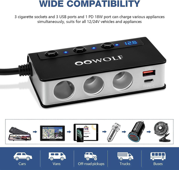اسپلیتر برق خودرو و دستگاه های شما جلوگیری می کند. رایگان برای دو فیوز اضافی.【مانیتور ولتاژ】 پس از روشن شدن مرکز