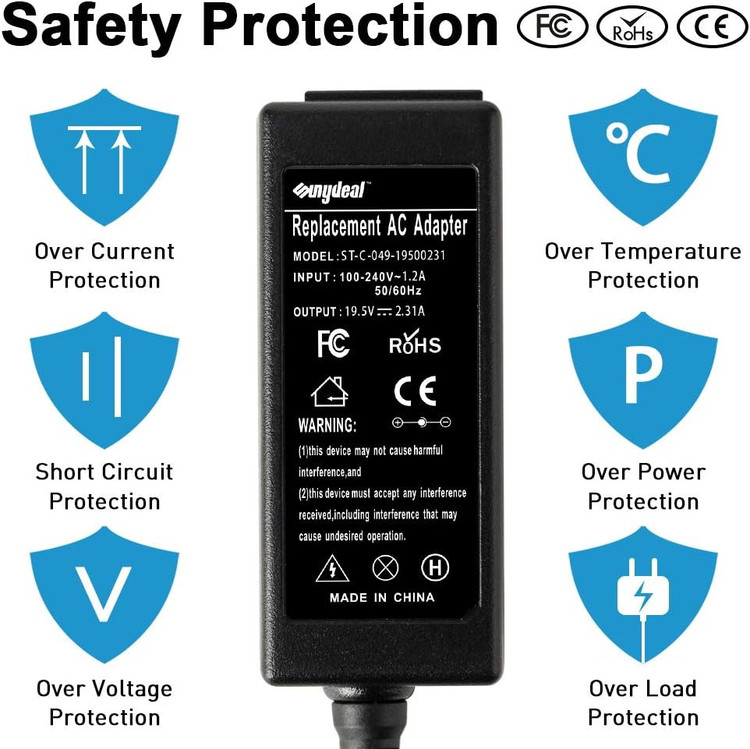 خروجی: 19.5V 2.31A 45W اندازه کانکتور 4.5x3.0mm (نوک آبی با پین داخل) ورودی: 100-240V 1.5A 50 - 60Hz; مواد ABS بسیار مقاوم، فرآیند پانچ اولتراسونیک، اصل مکانیکی عالی چقرمگی و تعادل فاز سخت. این ترکیبی از پوسته جامد و فرآیند مات است