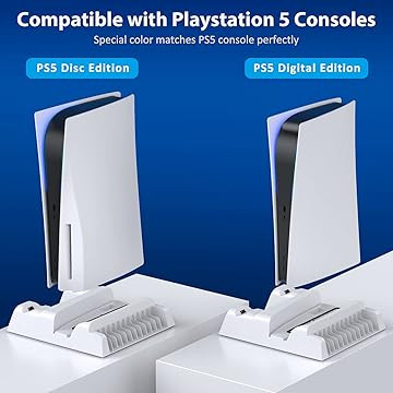🆕 【پایه و نگهدارنده قابل حمل PS5 برای دستهها، کنسول و بازیهای PS5】 این داک ارتقا یافته PS5 با دسته پلیاستیشن ۵ سازگار است. دو دسته را همزمان شارژ و نگهداری کنید، کنسول PS5 را در حالت عمودی نمایش دهید و ۱۲ بازی را در آن ذخیره کنید. همه اینها در یک طراحی شیک و مرتب که با طرح رنگ PS5 مطابقت دارد.