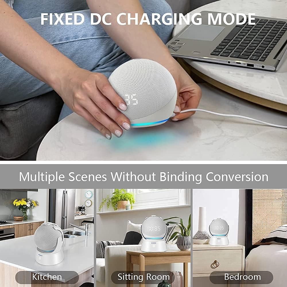 【طراحی قابل حمل - صرفهجویی در فضا】طراحی شیک، با پایه باتری قابل شارژ Dot تعبیه شده، ظاهری جدید به بلندگو میبخشد. پایه باتری قابل حمل ما برای Dot نسل 4 میتواند از پریز برق جدا شود. طراحی سبک به شما امکان میدهد از Dot خود در آشپزخانه، حمام و اتاق نشیمن استفاده کنید.