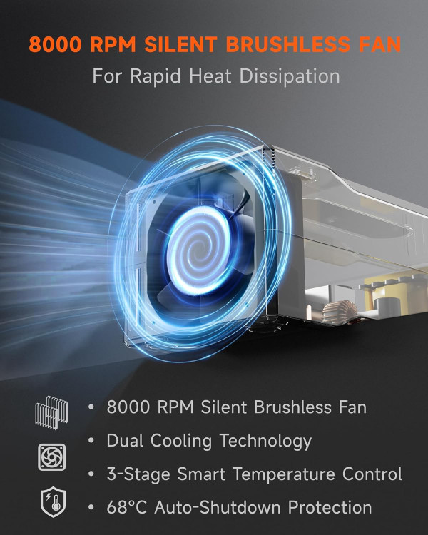 ✅ فن خنککننده توربو - فن پرسرعت داخلی از گرم شدن بیش از حد جلوگیری میکند و طول عمر بیشتر و شارژ ایمنتر را تضمین میکند.