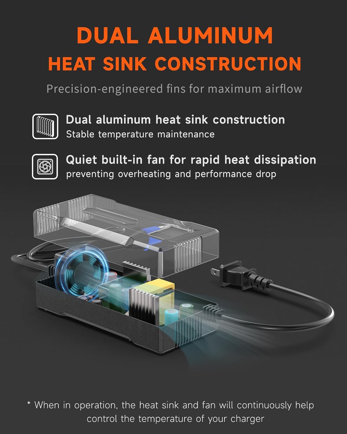 ✅ فن خنککننده توربو - فن پرسرعت داخلی از گرم شدن بیش از حد جلوگیری میکند و طول عمر بیشتر و شارژ ایمنتر را تضمین میکند.