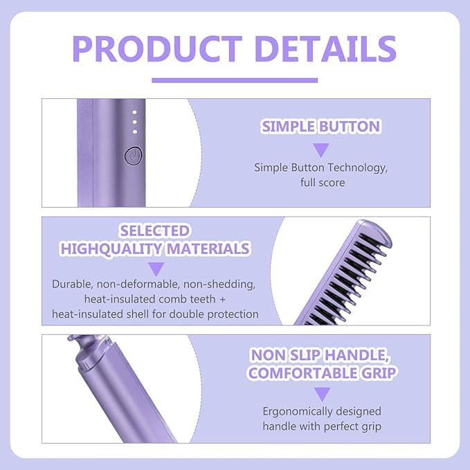 راحتی بیسیم برای حالت دادن در حال حرکت - با این برس صافکننده موی بیسیم که دردسر گره خوردن سیمها را از بین میبرد، تحرک واقعی را تجربه کنید. ایدهآل برای خانه، محل کار، سفر یا اصلاح سریع در حال حرکت.