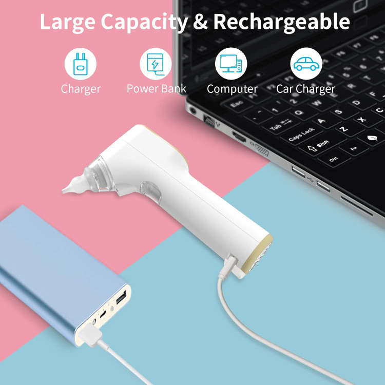 ] قابل شارژ[ Omoomo Booger Sucker for Baby دارای باتری داخلی 400 میلی آمپر ساعتی است. عمر طولانی باتری تضمین می کند که هر زمان که به آن نیاز دارید در دسترس است. توجه: مکنده بینی هنگام شارژ کار نمی کند.