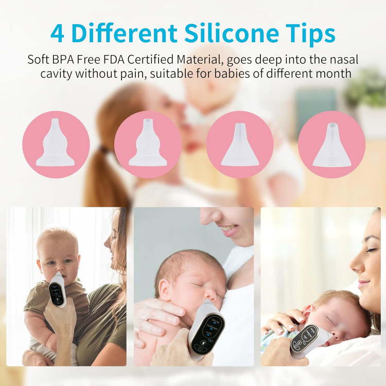 【عملیات بی صدا】 آسپیراتور بینی ما برای نوزادان با موتوری با کیفیت بالا برای اطمینان از صدای کم و چراغ گرم LED وجود دارد که باعث میشود کودک شما بتواند از یک تجربه بینی تمیز در محیطی آرام لذت ببرد. 【ایمنی و بهداشتی】 بدون BPA و لاتکس. آسپیراتور برقی بینی نوزاد Omoomo مطابق با استانداردهای مکش ایمنی تست شده است تا از آسیب مخاط ظریف بینی کودک، تماس با دهان و عفونت متقاطع جلوگیری کند.