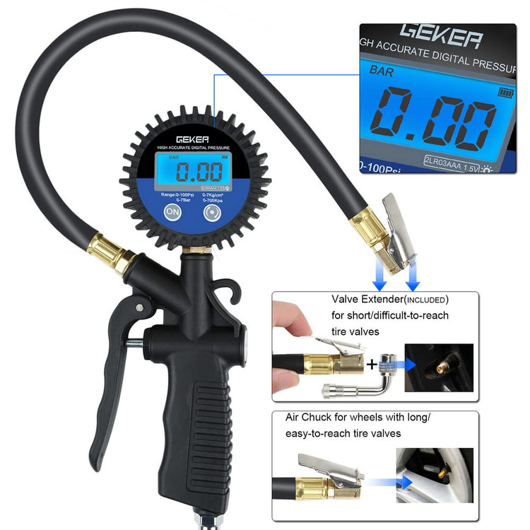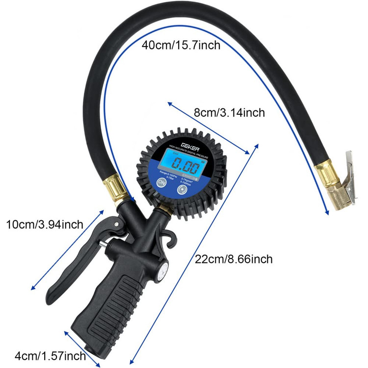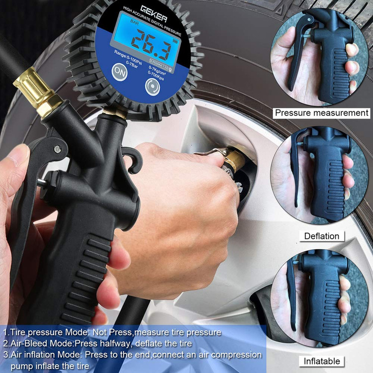 【گیج لاستیک دیجیتالی دقیق】 فشارسنج دیجیتال GEKER همیشه در عرض 1% فشار دقیق لاستیک شما مقدار دقیق را نشان می دهد. محدوده اندازه گیری از