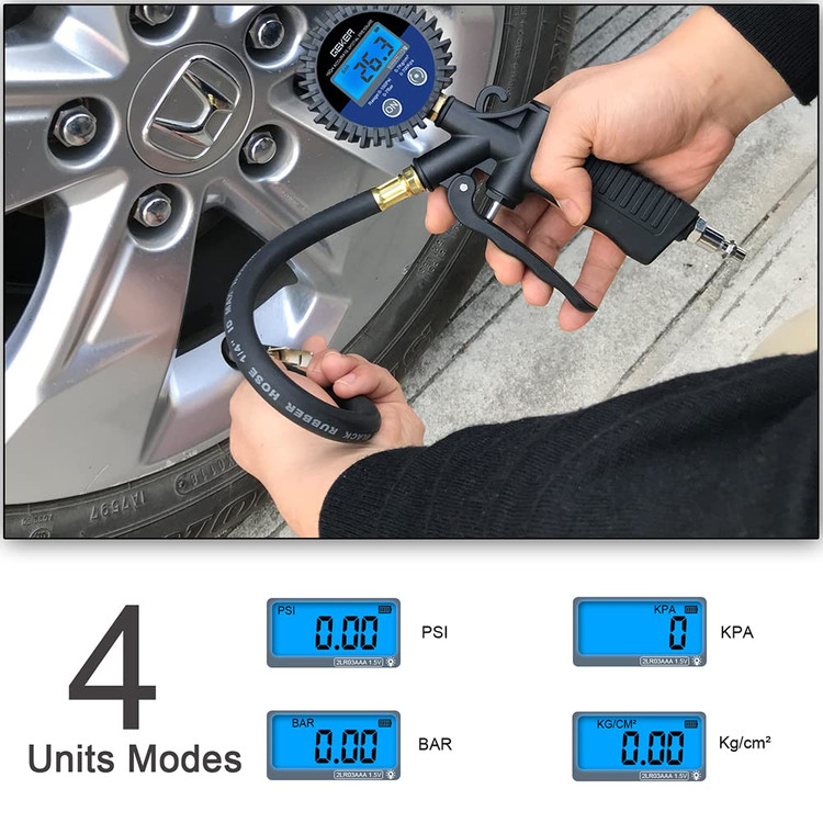 【نمایش دیجیتالی HD】این گیج لاستیک با صفحه نمایش با نور پس زمینه LCD می تواند فشار تایر را به وضوح در 4 واحد برای دید بالا در تاریکی نشان دهد.