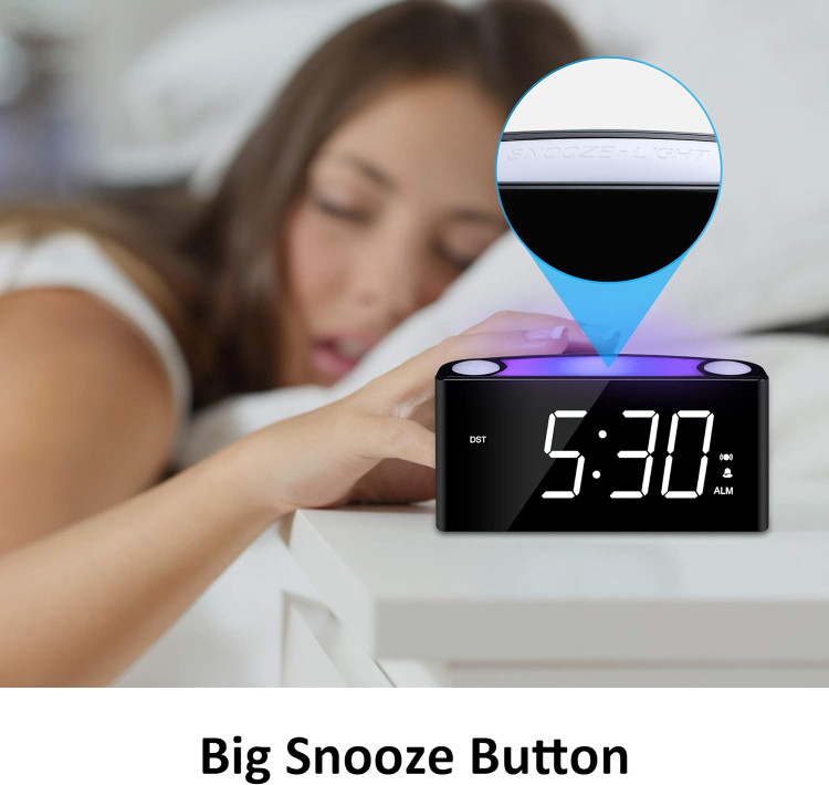 تنظیم صدای زنگ هشدار و تعویق بزرگ: زنگ ساعت خود را با یک نوار لغزنده صدا سفارشی کنید و با دکمه بالا برای 9 دقیقه خواب اضافی، به تعویق افتادن